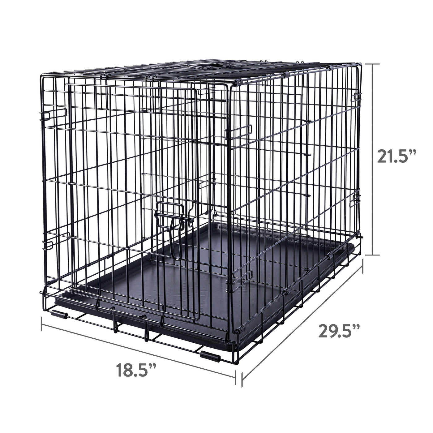Vibrant Life single door dog crate measures 30L x 19 x 21 inches and is suitable for medium dog breeds with an adult weight of 25 to 40 pounds. If your dog’s weight or measurements are on the higher side for this crate, we recommend buying the next crate size up