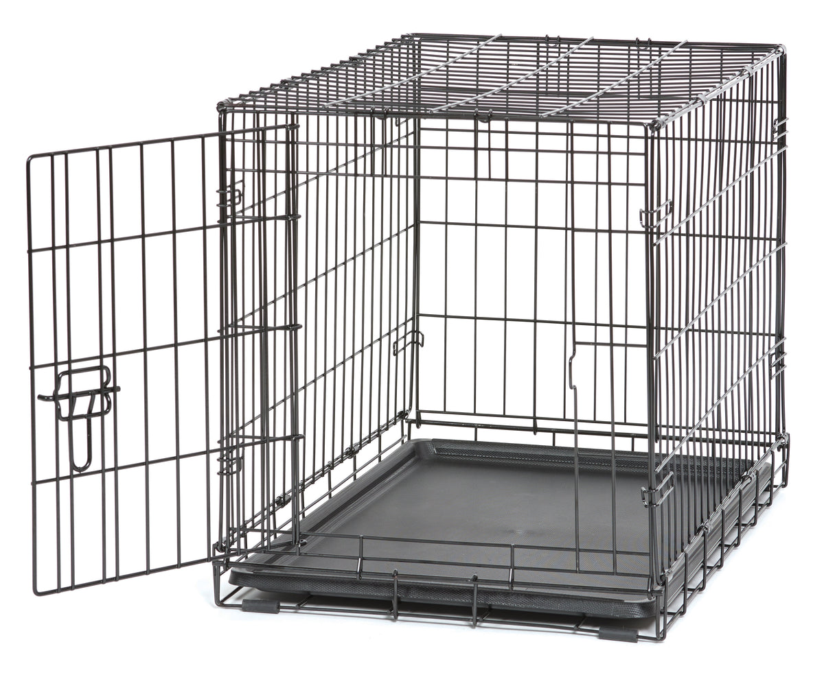 The Vibrant Life folding metal dog crate includes all of the features you will need to provide a convenient, safe & secure pet home for your best friend, from puppy to adulthood. This crate includes a divider panel allowing you to adjust the size of the living area as your puppy grows. The plastic leak-proof pan allows easy clean-up in the event of an accident. A strong plastic carrying handle is included for convenient portability , and rubber feet on the bottom of the crate protect the floors inside your home.